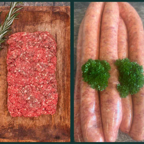 Sourced from cattle that are raised sustainably and ethically, our beef is packed with flavor and essential nutrients. Grass-fed beef is known for its superior nutritional profile, providing higher levels of omega-3 fatty acids and essential vitamins compared to conventional grain-fed options. By choosing our Mitch Beef Sausages & Mince Pack, you can enjoy delicious meals that also support your well-being and align with your values.
